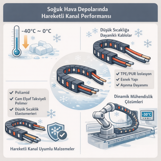 Soğuk hava depolarında hareketli kablo kanallarının performansı nasıl korunur? Düşük sıcaklıklarda kablo taşıma sistemleri için tasarım ve mühendislik çözümleri.