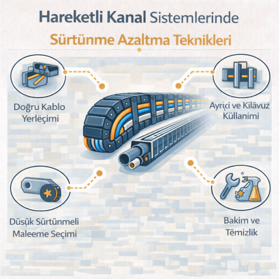 Hareketli kanal sistemlerinde sürtünme azaltma teknikleri, kablo ömrünü uzatır ve sistem verimliliğini artırır. Bu rehberde hareketli kanal sistemlerinde sürtünme azaltma teknikleri detaylı şekilde açıklanmaktadır. Hareketli kanal sistemlerinde sürtü