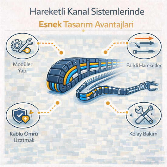 Hareketli kanal sistemlerinde esnek tasarım avantajları, kablo yönetiminde verimlilik ve uzun ömür sağlar. Bu rehberde hareketli kanal sistemlerinde esnek tasarım avantajları detaylı şekilde açıklanmaktadır. Hareketli kanal sistemlerinde esnek tasarı